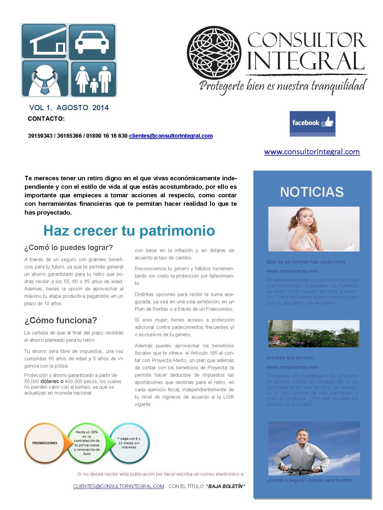 Tu Patrimonio 2014 por consult7 | Ago 1, 2014 | Boletines, Plan de Retiro, Seguro de Vida | 0 Comentarios Enviar comentario Cancelar la respuestaTu dirección de correo electrónico no será publicada. Los campos obligatorios están marcados con *Comentario * Nombre * Correo electrónico * Web Guarda mi nombre, correo electrónico y web en este navegador para la próxima vez que comente.